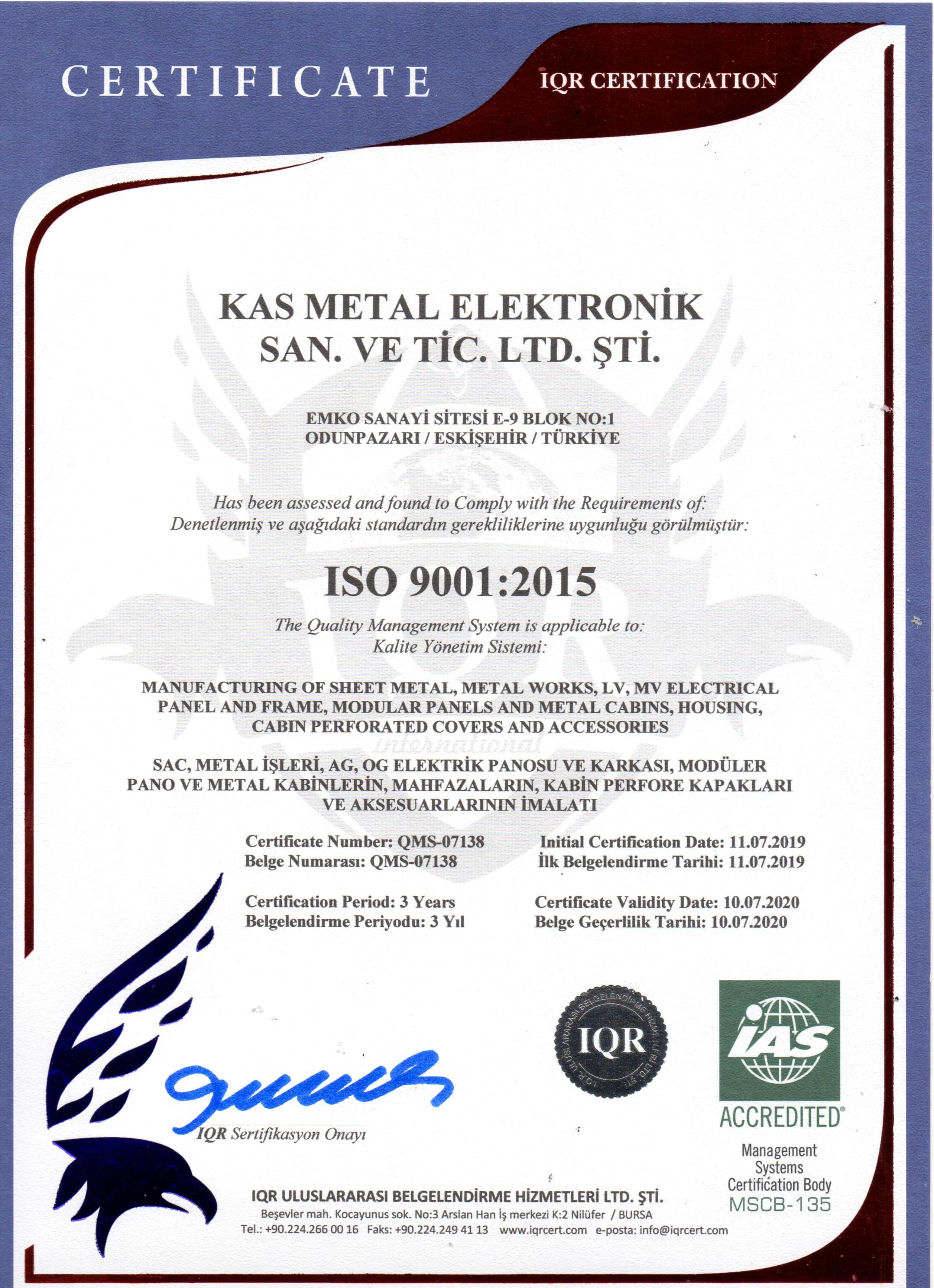 Kasmetal Elektronik olarak 2008 yılında Eskişehir’de, bir press makinası ile üretime başladık, bugün ise yetenekli kadromuz ve bünyemizdeki cnc makinalar ile hizmet vermekteyiz. Makinalarımız; lazer, punch, abkant, eksantirik ve hidrolik pressler başta olmak üzere gazaltı kaynak makinaları ve elektrostatik boyahane ile uluslararası standartlarda ürünler üretmekteyiz.